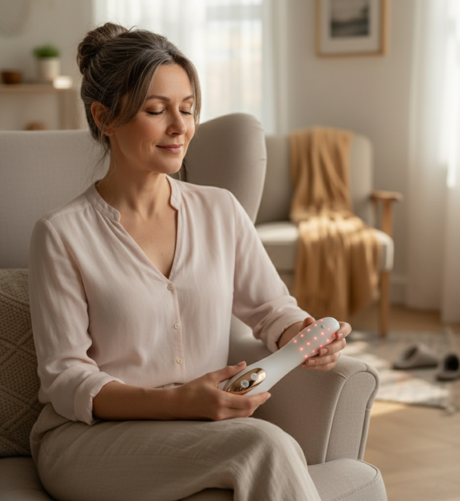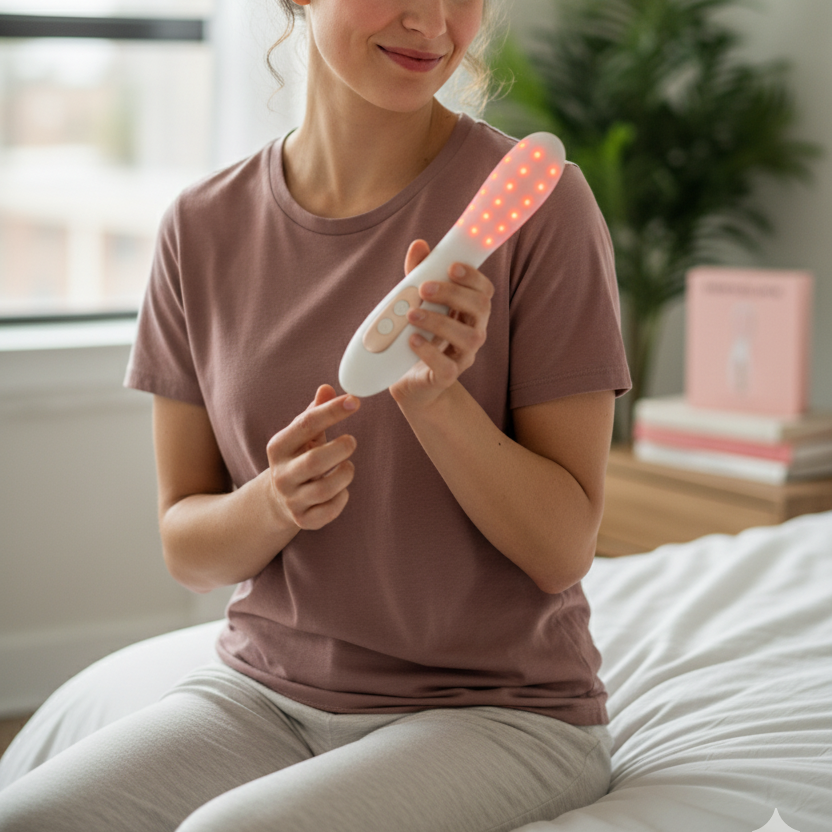 Warmth first. Red light support next. Then pelvic engagement and hydration support - designed for 5 to 10 minutes at home.