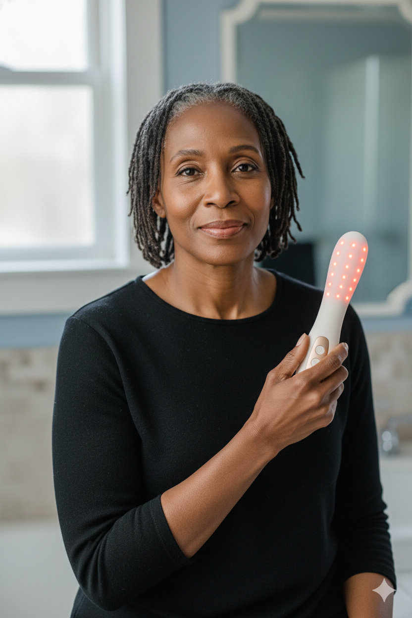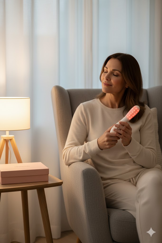 Meet Menoluma warmth, light, and hydration working together for comfort again.