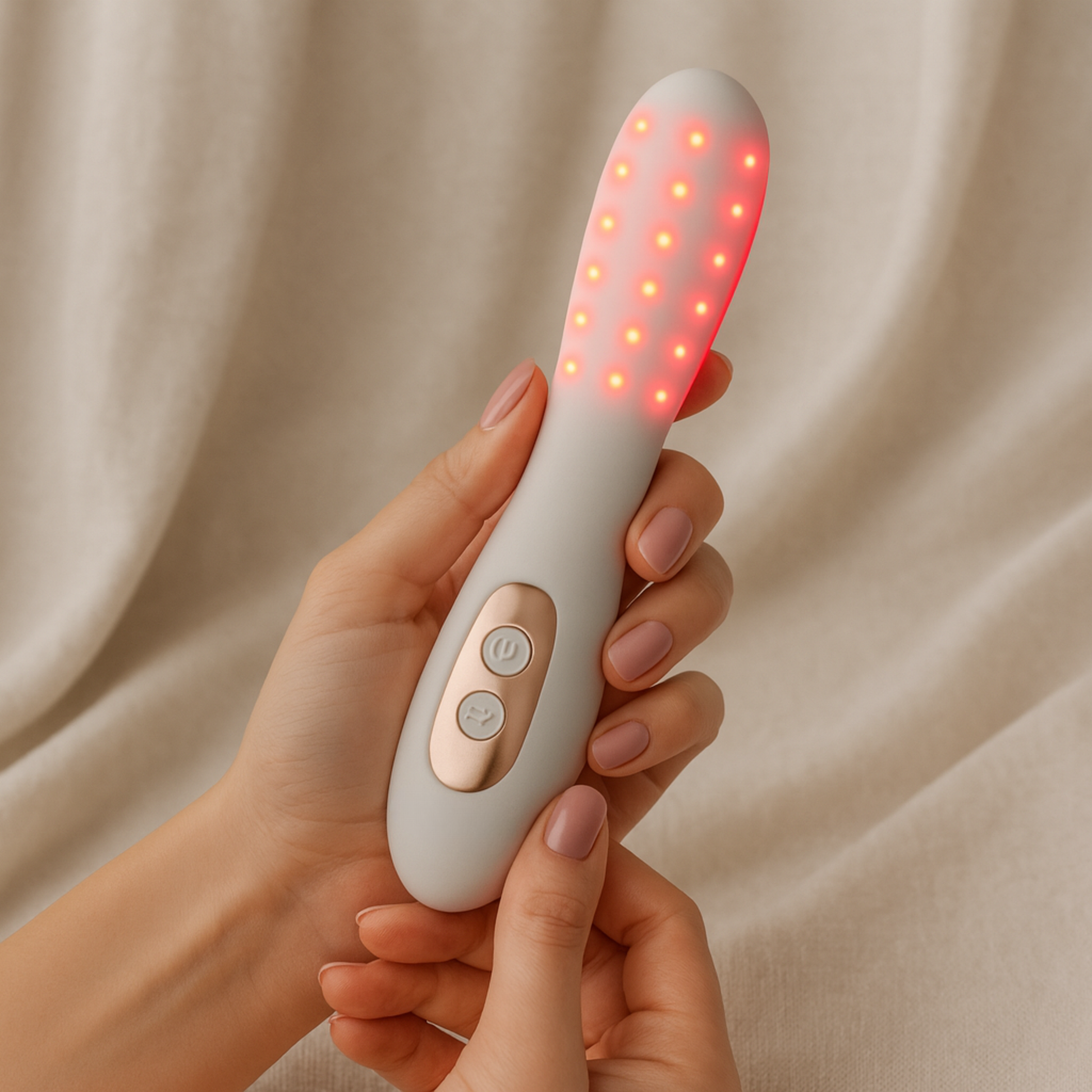 Menoluma uses 660 nm red light the same therapeutic wavelength used in leading, clinic-validated intimate wellness technology for targeted photobiomodulation (PBM).